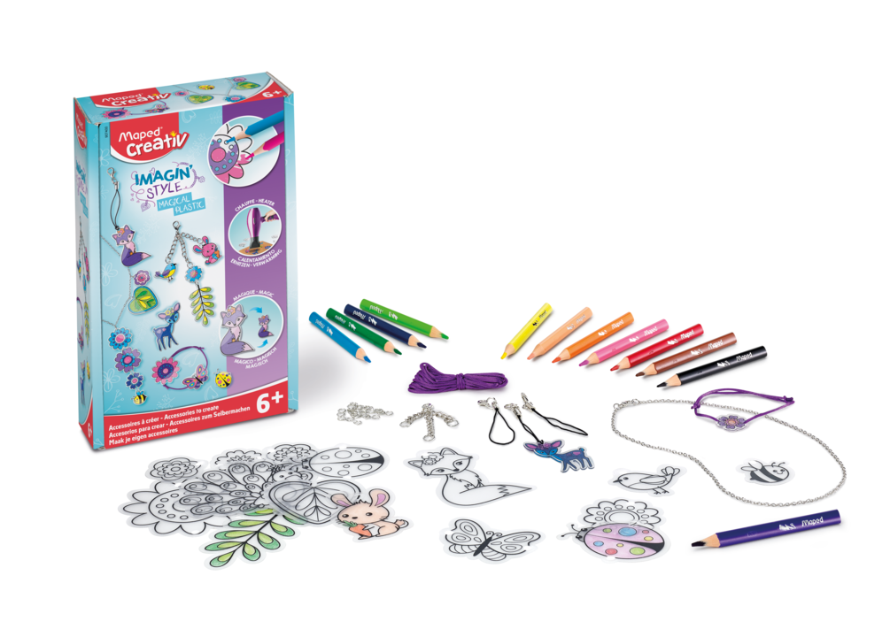 | Εύκολο και σχεδόν μαγικό: αφού χρωματίσετε τα σχέδια, θα συρρικνωθούν και θα γίνουν σκληρά και λαμπερά για εντυπωσιακά αποτελέσματα! Μπορεί να γίνει είτε με πιστολάκι μαλλιών είτε με χρήση φούρνου. Δημιουργήστε βραχιολάκια, μπρελόκ , κολιέ, και διακοσμητικές καρφίτσες. Η συσκευασία περιλαμβάνει 19 σχέδια , αξεσουάρ (1x2,5m νήμα, 1 αλυσίδα, 25 συνδετικούς κρίκους, 2 μπρελοκ) , 12 ξυλομπογιές Maped mini strong. Κατάλληλο για ηλικία 6+ . Διαστάσεις συσκευασίας :12,75x20,9x5,1 |