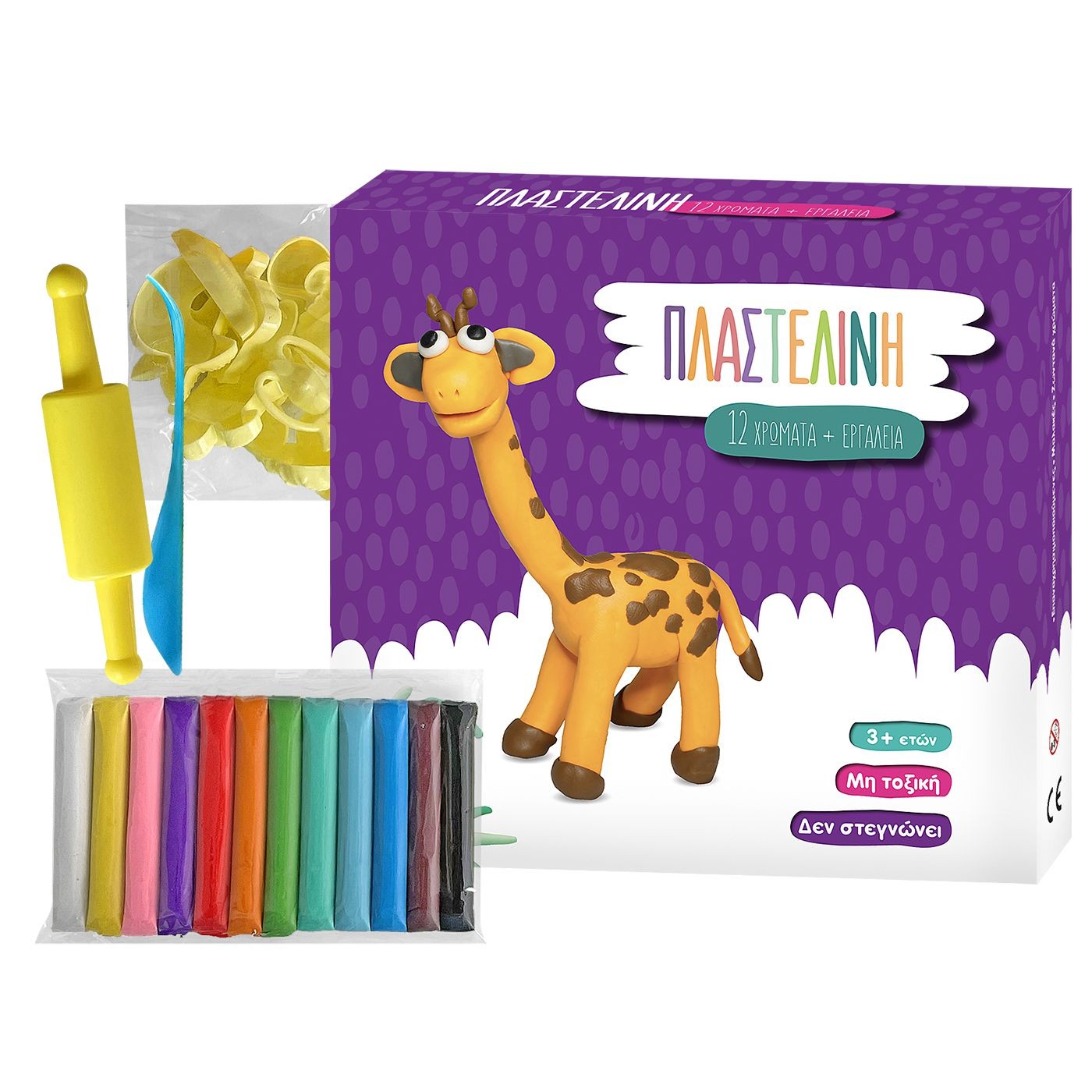 Πλαστελίνη Κουτί με Καλούπια & Εργαλεία σετ=12 Χρώματα 180gr